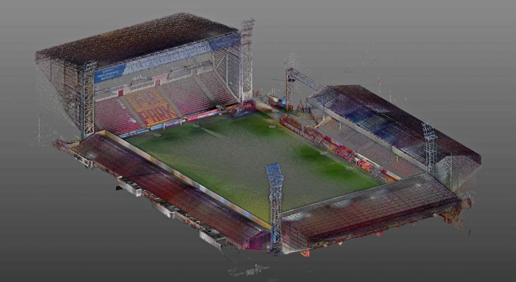 Highly accurate 3D scan of football stadium to create an extremely accurate 3D model.